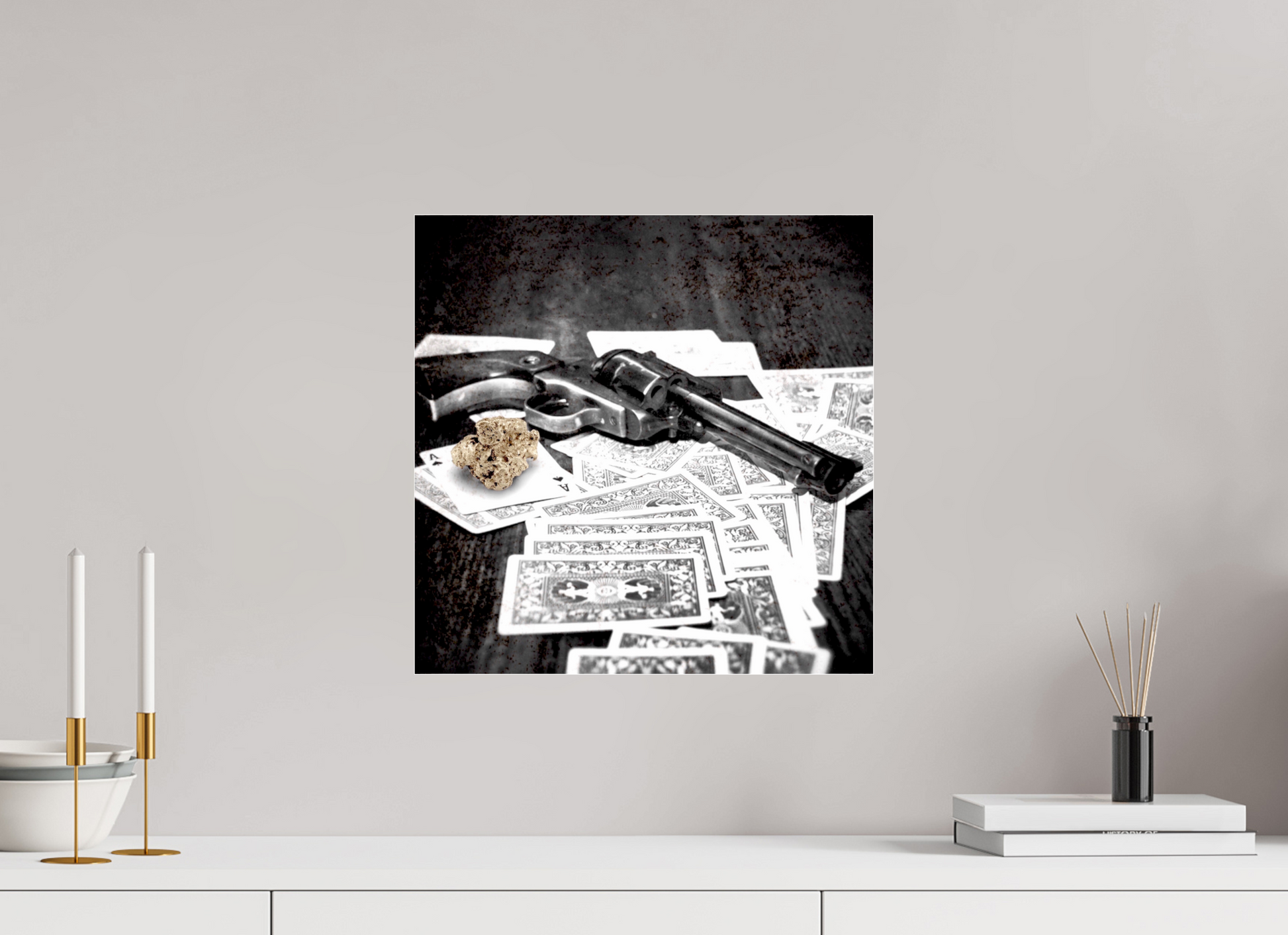 Gun, Money, Playcards, Black/White